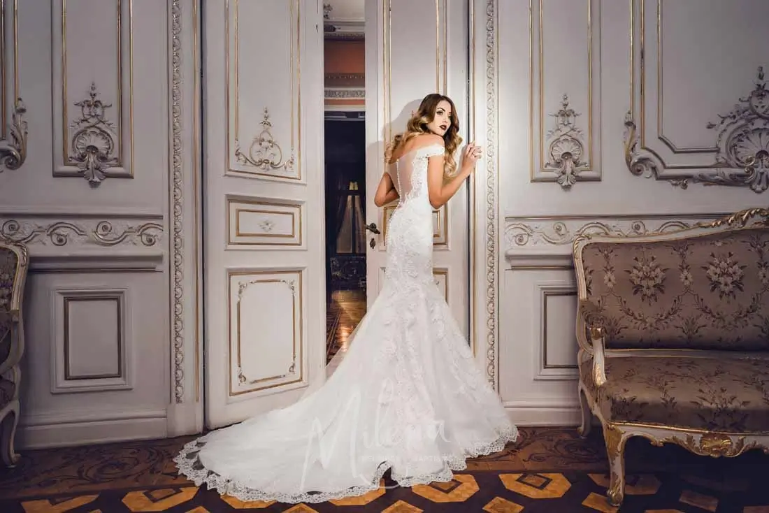Νυφικό γοργονέ με ραντάκια δαντέλας