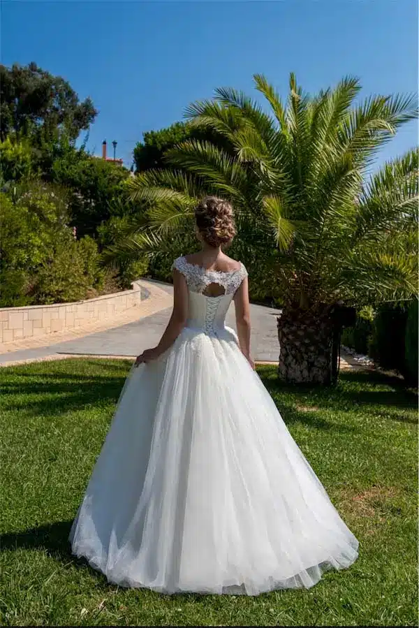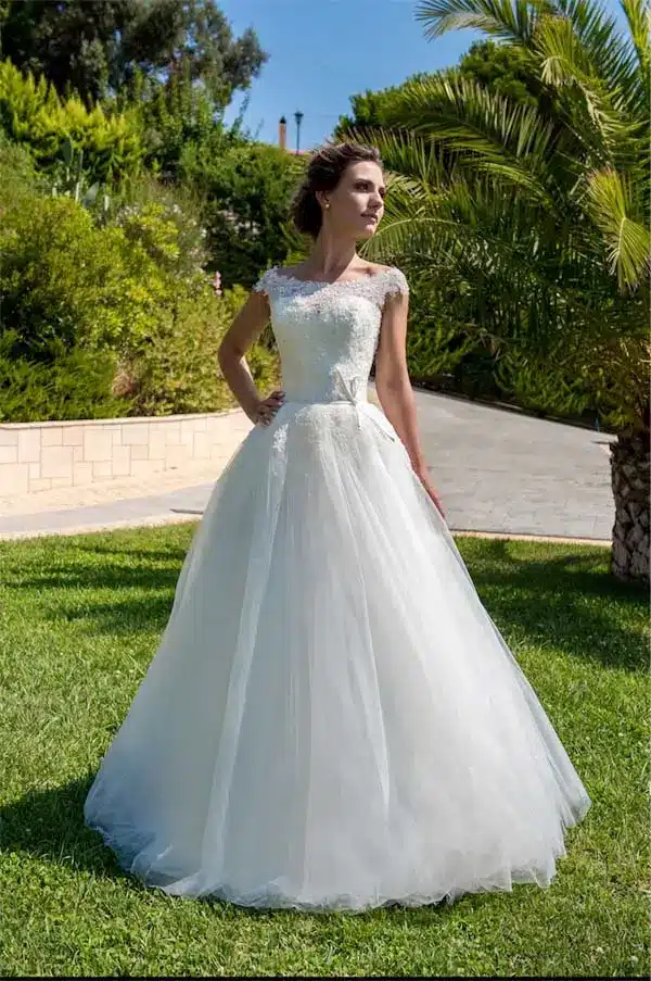 Φουσκωτό νυφικό με τούλι και διαφάνεια