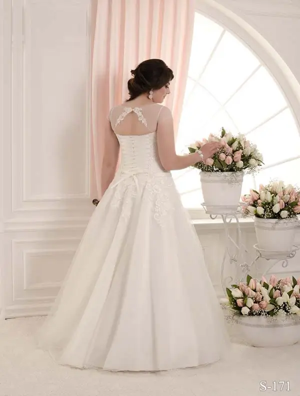 Νυφικό Α-γραμμής με δαντέλα και μεγάλη ουρά