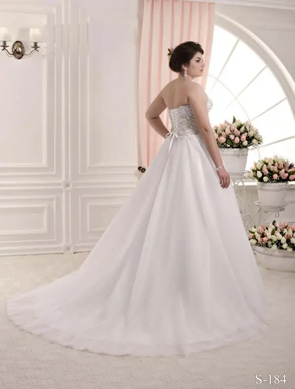 Νυφικό Α-γραμμής με δαντέλα και μεγάλη ουρά