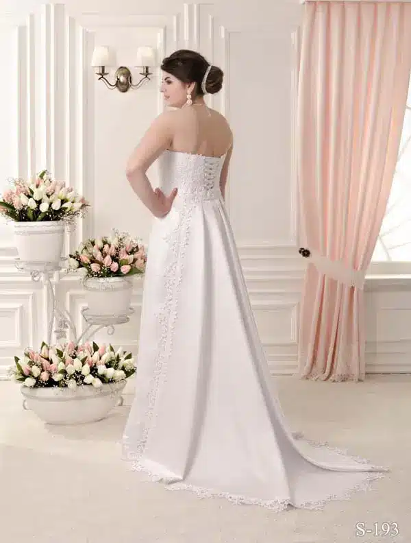Νυφικό Α-γραμμής με δαντέλα και μεγάλη ουρά