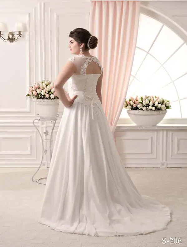Φουσκωτό νυφικό με δαντέλα και κουμπιά