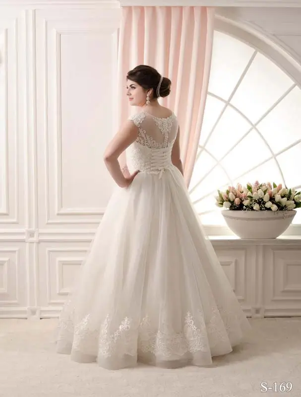 Φουσκωτό νυφικό με ρασμίρ και δαντέλα