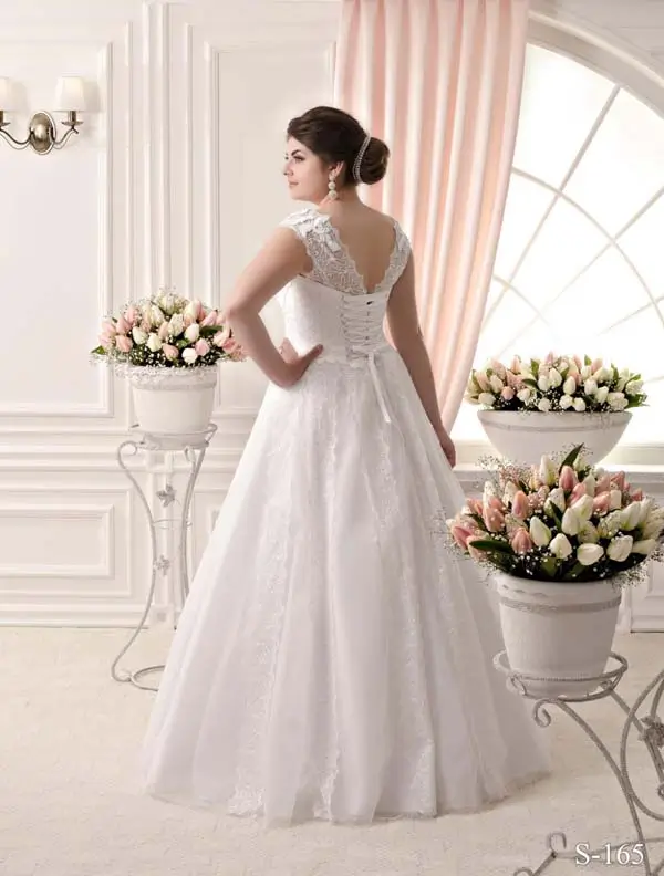 Γοργονέ νυφικό με λαιμόκοψη και δαντέλα