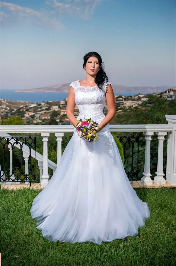 Φουσκωτό νυφικό με τούλι και δαντέλα