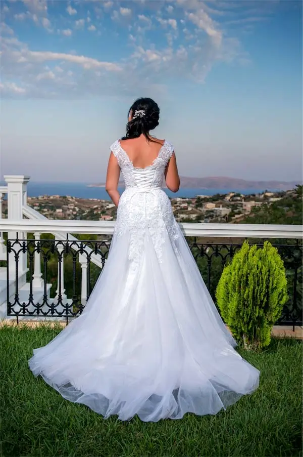 Γοργονέ νυφικό με λαιμόκοψη και δαντέλα